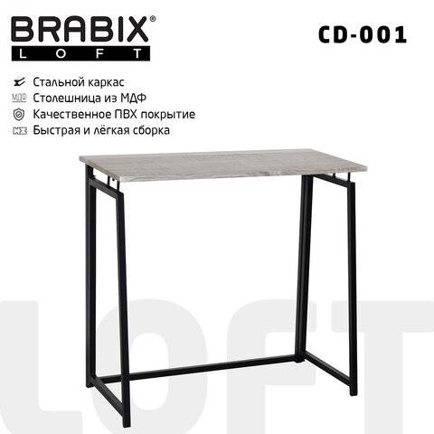 Стол на металлокаркасе BRABIX LOFT CD-001, 800х440х740 мм, складной, цвет дуб антик, 641210